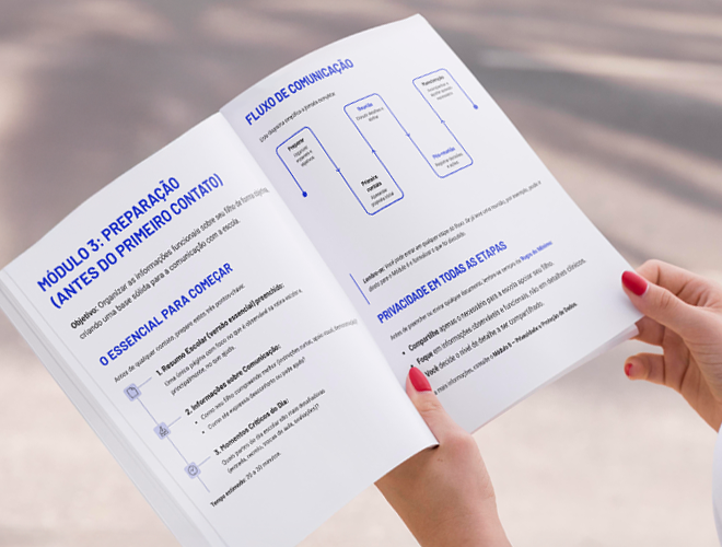Para escolas públicas e privadas. O foco é organizar a comunicação, não o modelo da escola.